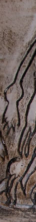 TEXTURING is heavy. The deeply carved gypsum with contrasting background gives images an ethereal radiance. Edges of prepared board have the appearance of “rock” texture.