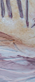 COLORS used in this artwork are soft blues, golds and hues of red/maroon/crimson with medium browns.