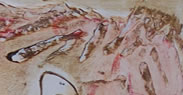 COLORS used in this artwork are reds/crimson, ocher blends, black and browns.