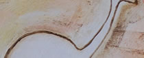 CULTURAL INSPIRATION: This painting is on a rock wall in the Emu Gallery, Laura, Queensland. A spectacular gallery of bold paintings and engravings are located on the walls of caves in the Laura district, just north of Cairns. It is one of many magnificent specimens of Aboriginal rock art. The large bird in the center is called an emu, flightless birds related to the ostrich. The elongated black object at the bottom of the painting is a hunting club. The hunting club was the Aborigine’s basic weapon. They varied in lengths according to the size of the user, and were often used to settle disputes among the women.
