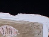 CULTURAL INSPIRATION: This particular piece of artwork is inspired from a bark painting from Groote Eylandt. A bark painting is one of the best-known forms of Aboriginal art. In the early days, paintings often decorated the walls of bark huts and cylindrical bark containers that were used by the early aboriginal. Ancestral Beings are hunting for a turtle and dugong, or “sea cow”. Sea cows are herbivorous marine mammals that have flippers and a paddle-like tail. The picture shows a dugout canoe being dragged through the water by the dugong as it tries to dislodge the harpoon head from its body.