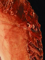 COLORS used in this artwork are striking blends of burnt sienna, raw sienna, burnt umber and raw umber. A ground clay pigment rub adds to the intensity of these colors. The image is deeply “carved”.