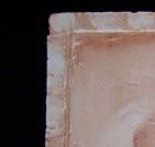 TEXTURING is soft. Edges of prepared board are highlighted by carved frame done in same colors.