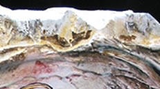 COLORS included in this piece are kohl, ground clay, amarillo medio, yellow ochre, dirt from Chimayo , New Mexico and Sedona , Arizona and saffron. Saffron is a bright orange-yellow color. It is one of the world’s most expensive and oldest spices. The earliest reference to saffron is believed to be from a seventh-century B.C. Assyrian botanical text. Ancient Sumerians and Phoenicians extracted its oil, a key ingredient in their perfumes. Ancient people were also aware of saffron’s medicinal properties. The Ebers Papyrus, a 1500 B.C. Egyptian medical text, currently in the library at the University of Leipzig , recommends saffron for kidney ailments.